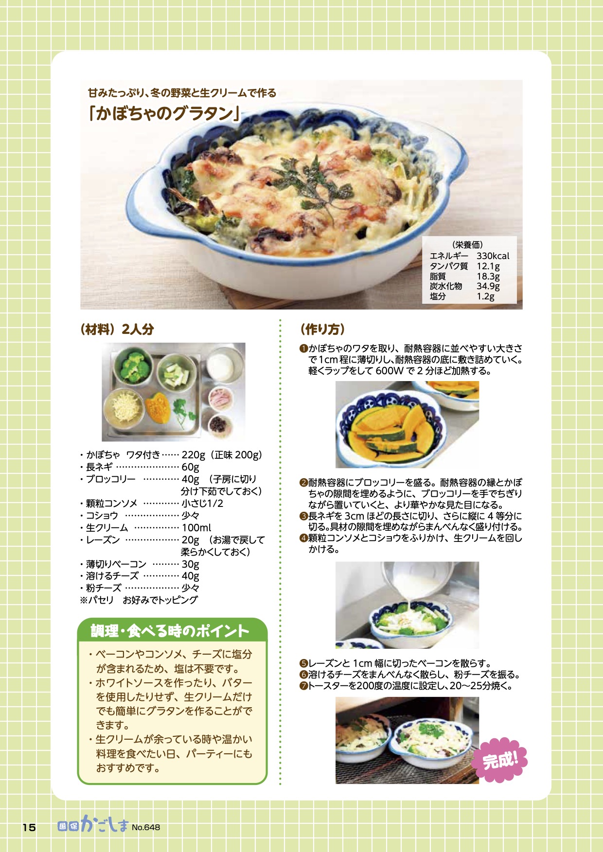 かぼちゃには「冬至に食べると風邪をひかない」と言い伝えがあるように、免疫機能を高めるカロテンやビタミン類が豊富です。栄養満点の温かい料理が美味しい季節です。食べすぎには注意しつつ、寒い冬を元気に過ごしたいですね。